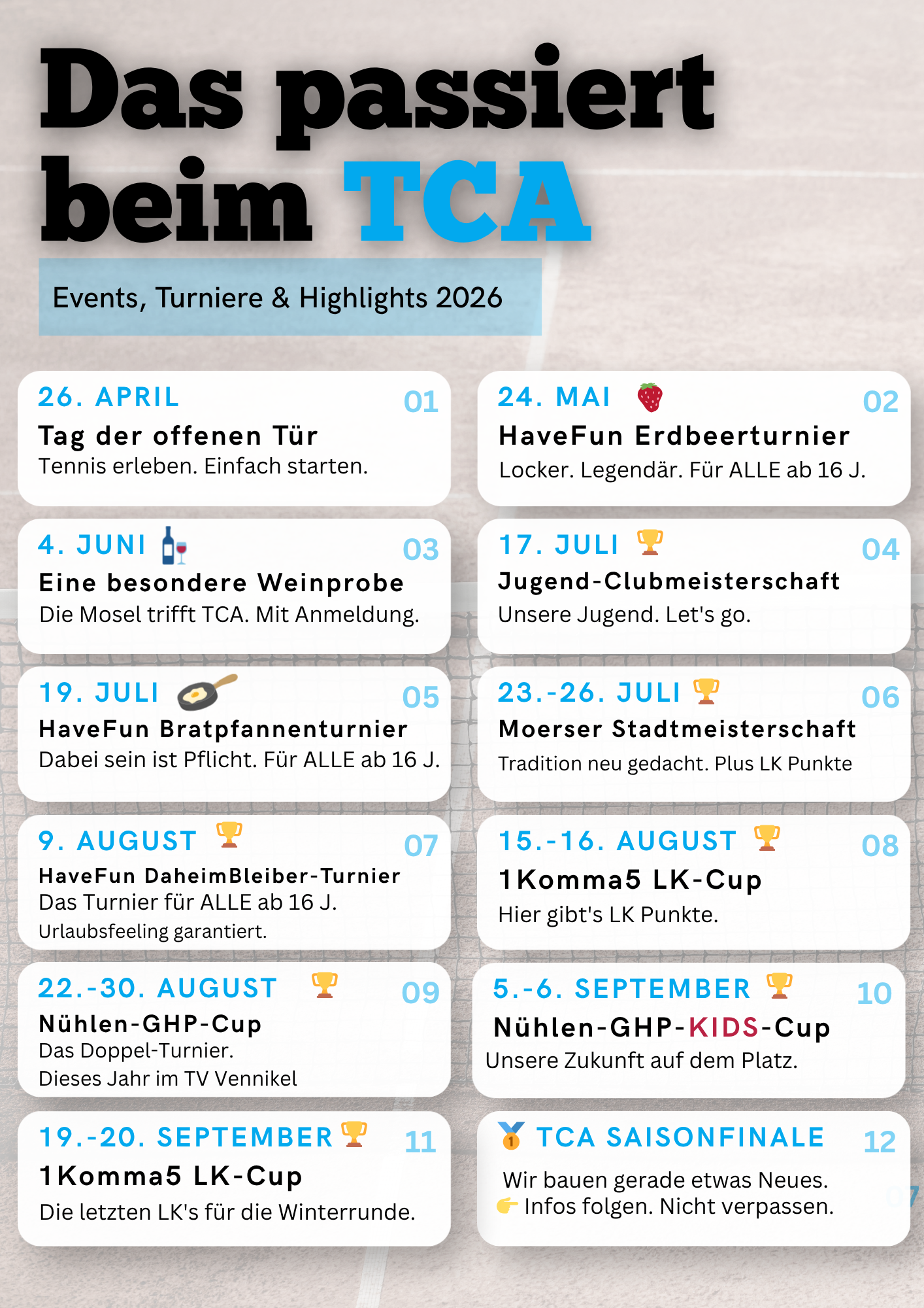 Kommt als Ehepaar oder mit der ganzen Familie und genießt die großartige Gemeinschaft im TCA.
